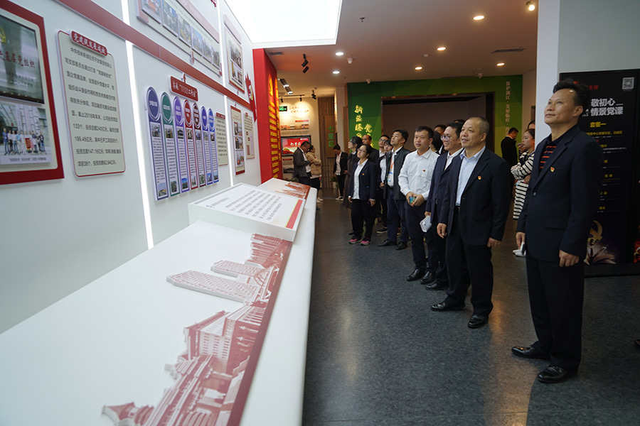 活動(dòng)當(dāng)天,大家參觀了位于新城投資集團(tuán)辦公大樓一、二樓的桂林市黨群服務(wù)中心。講解員為黨員們一一講解了中心的定位、功能及各展區(qū)的內(nèi)容,黨員們認(rèn)真聆聽講解員的講解,依次參觀了桂林市黨員志愿者服務(wù)總站、黨群業(yè)務(wù)受理區(qū)和黨組織活動(dòng)區(qū)等展廳。體驗(yàn)了“健康小屋”“城市書吧”“i游桂林”“時(shí)光隧道”“微笑墻”“非遺文化屋”“紅色影院”“電子翻書”等功能設(shè)施。通過觀看3D幻影成像《湘江戰(zhàn)役》和微電影《廖俊波》,真切感受了先輩們踐行初心拋頭顱、灑熱血的壯舉及廖俊波同志對(duì)黨忠誠(chéng)、無私奉獻(xiàn)的高尚品質(zhì)。在以湘江戰(zhàn)役為歷史背景而制作的雕塑前,全體黨員合唱《國(guó)際歌》《中華人民共和國(guó)國(guó)歌》,重溫入黨誓詞。
