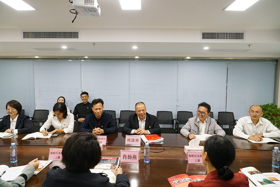 臨桂區(qū)直機關工委李梅、張斌、蒙建梅等陪同調研,集團公司黨支部鄧仁友、張新悅、譚力源等參加上述活動。