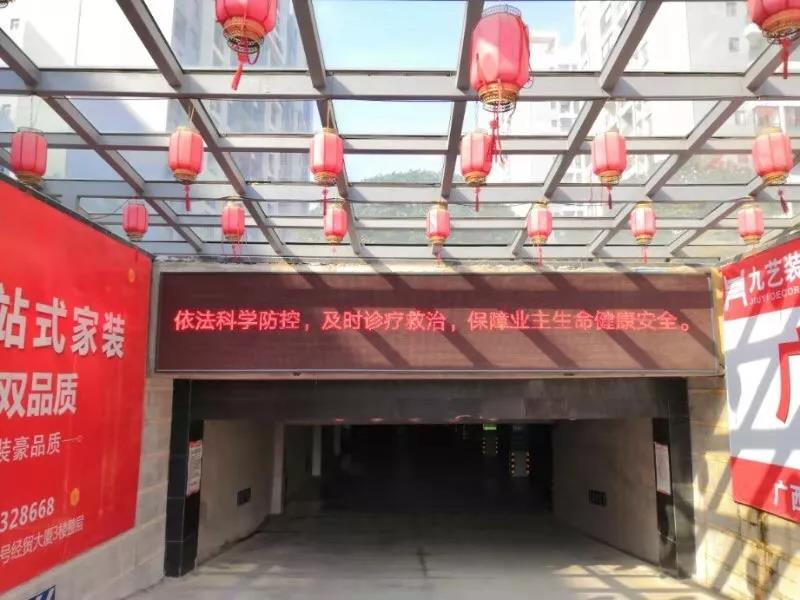 ▲新城國奧小區(qū)項(xiàng)目利用LED屏幕宣傳防疫信息。并對(duì)出入門把手、電梯按鍵、兒童娛樂設(shè)施等消毒。