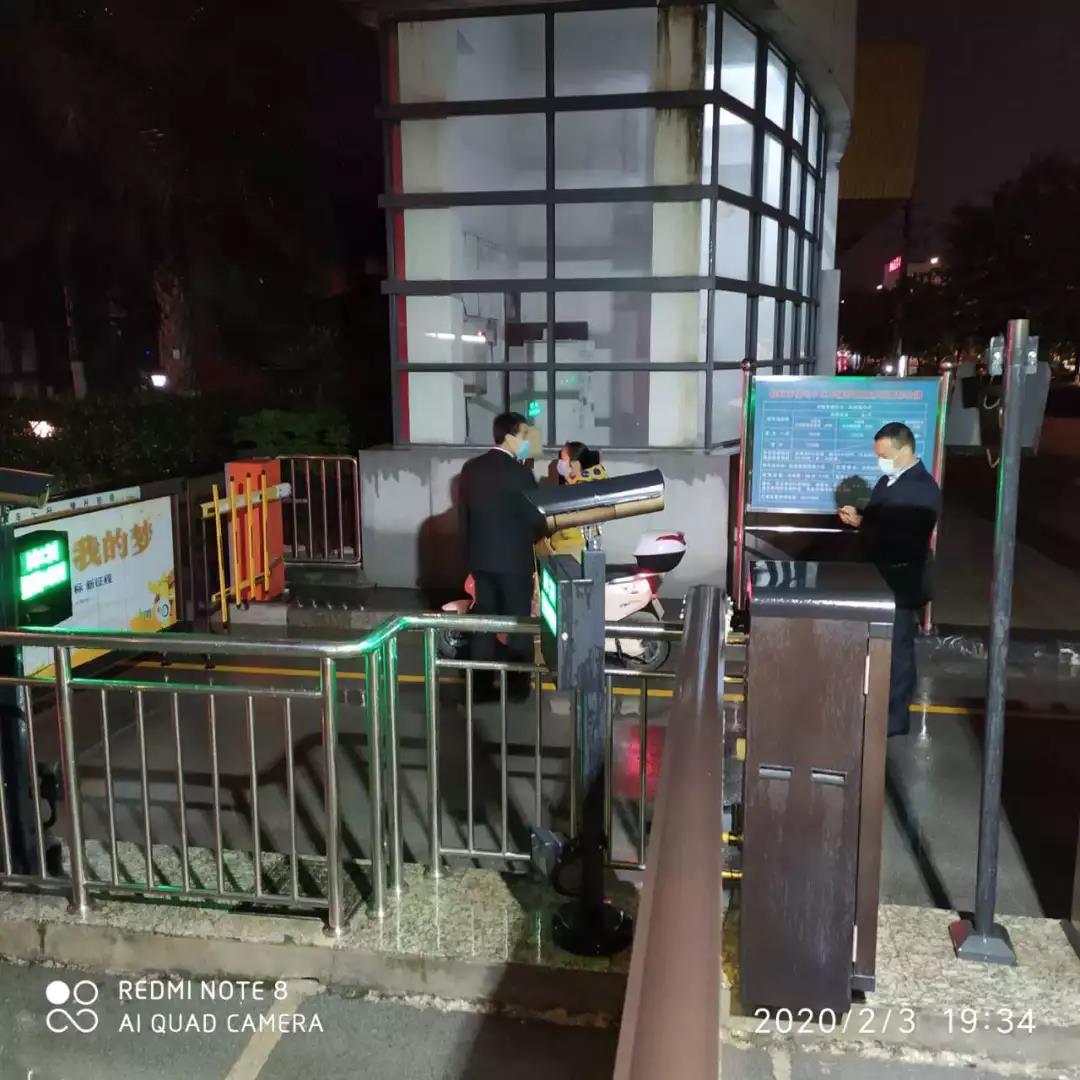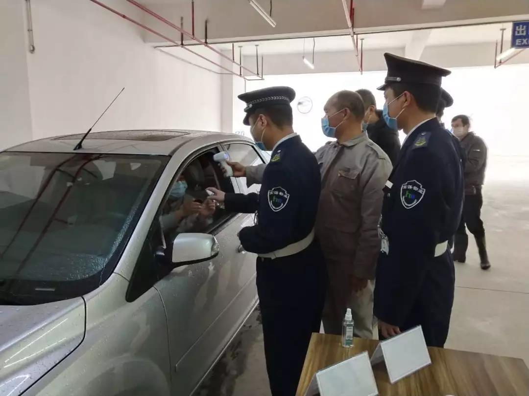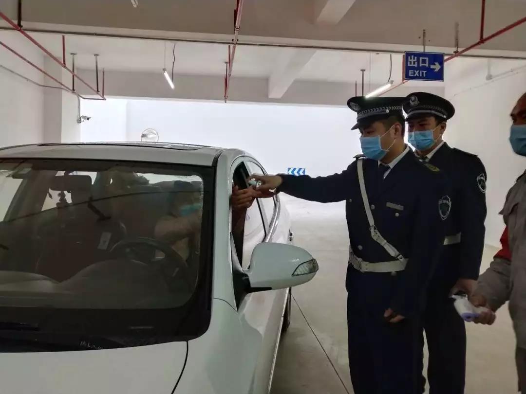 ▲地下停車場也設(shè)立了疫情防控崗,為進(jìn)入停車場停車人員測體溫、噴灑酒精消毒。