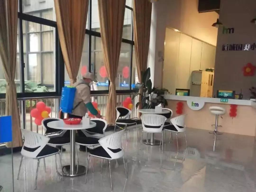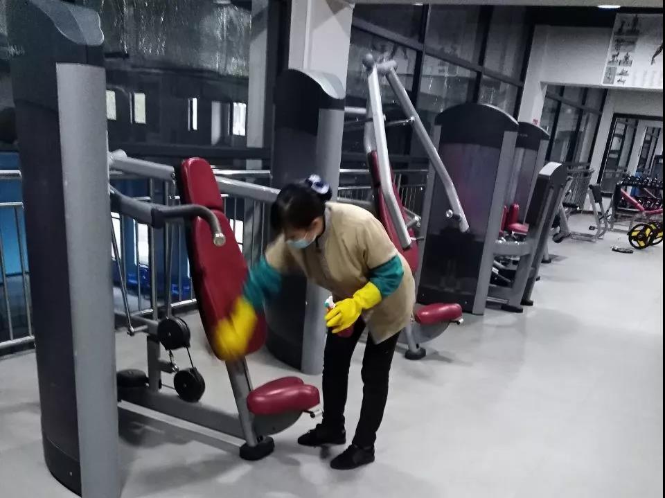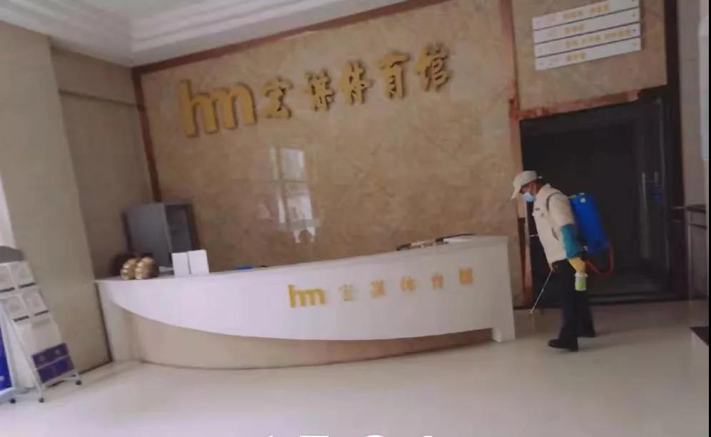 ▲保潔人員分別對(duì)物業(yè)中心、員工食堂、小區(qū)門崗、宏謀體育館等區(qū)位進(jìn)行全面消毒。
