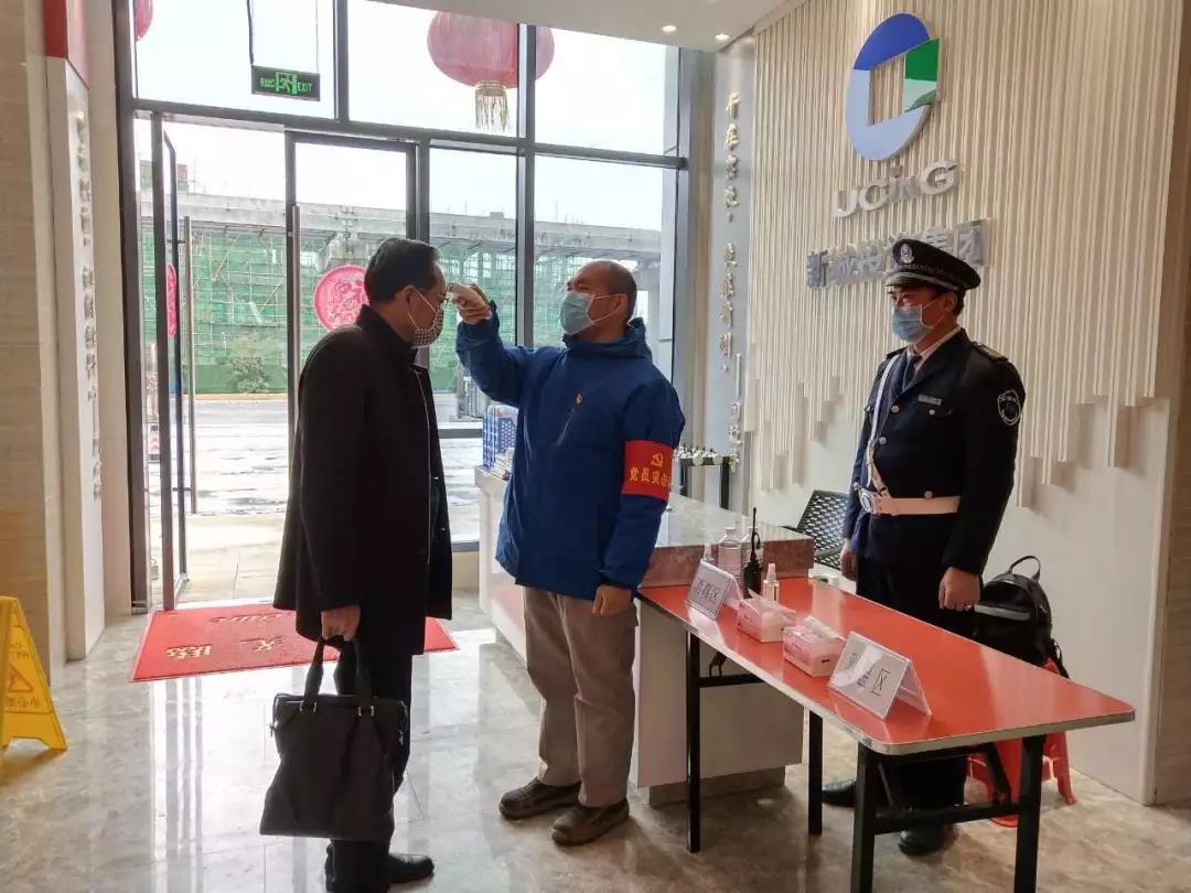 ▲疫情防控崗在為進(jìn)入辦公樓人員測體溫。