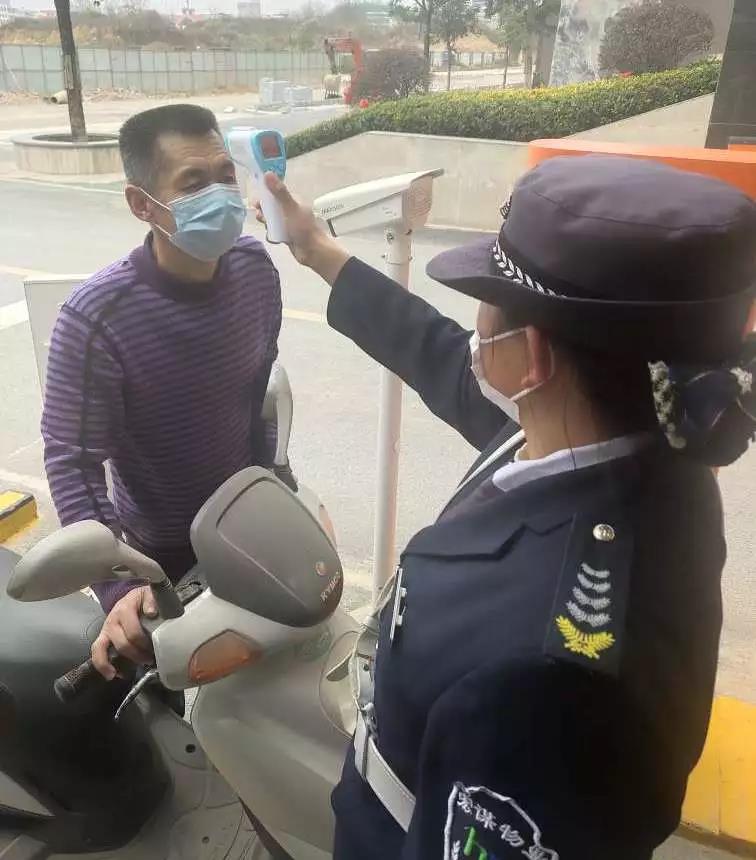 ▲疫情防控崗在為進(jìn)入小區(qū)人員測體溫。