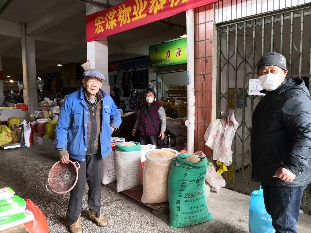 ▲橡膠公司項(xiàng)目工作人員與市場管理人員對(duì)市場及各門面進(jìn)行防疫工作排查,并提醒市民戴口罩出行。