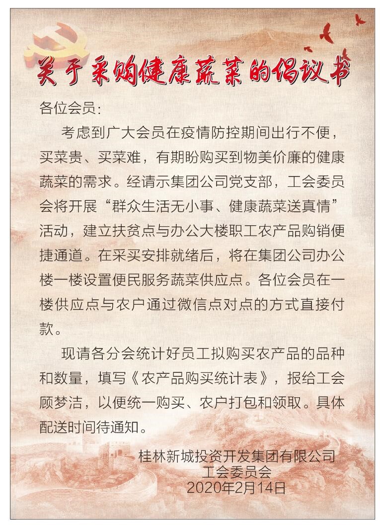 “你搶著菜了嗎?”已經(jīng)成為新冠肺炎疫情下,除“你搶著口罩了嗎?”外另一句流行的打招呼方式。而居家隔離、不敢出門(mén)、菜市場(chǎng)貨物短缺出現(xiàn)的買(mǎi)菜貴、買(mǎi)菜難等等問(wèn)題隨之而來(lái)。集團(tuán)公司工會(huì)想職工之所想,始終關(guān)心職工冷暖,把“新鮮蔬菜配送到辦公樓”的想法模式孕育而生。在集團(tuán)黨支部的指導(dǎo)下,工會(huì)委員會(huì)主動(dòng)聯(lián)系周邊鄉(xiāng)鎮(zhèn)的貧困農(nóng)戶,組織開(kāi)展“群眾生活無(wú)小事、健康蔬菜送真情”點(diǎn)對(duì)點(diǎn)活動(dòng),即開(kāi)通扶貧點(diǎn)農(nóng)戶的農(nóng)產(chǎn)品與辦公大樓職工的購(gòu)銷便捷通道,這種做法不僅充分發(fā)揮了工會(huì)聯(lián)系群眾的橋梁紐帶作用,把密切聯(lián)系群眾的優(yōu)勢(shì)轉(zhuǎn)化為疫情防控的優(yōu)勢(shì),而且還搭建起了一座防疫與扶貧的愛(ài)心橋,將“群眾利益無(wú)小事,一枝一葉總關(guān)情”的工會(huì)服務(wù)理念落在了實(shí)處。