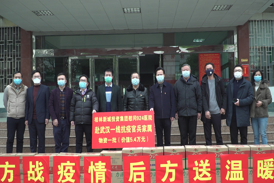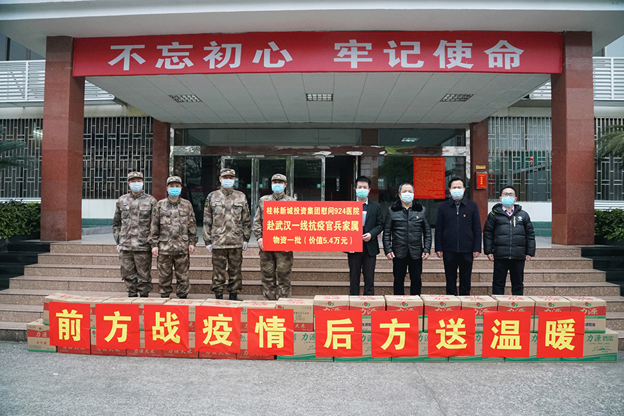為貫徹落實習近平總書記關于務必高度重視對醫(yī)務人員的保護、關心、愛護,從各個方面提供支持保障,使他們始終保持強大戰(zhàn)斗力、昂揚斗志、旺盛精力,持續(xù)健康投入戰(zhàn)勝疫情斗爭的指示精神,2月21日早上9點30分,桂林警備區(qū)、新城投資集團在第九二四醫(yī)院辦公樓舉行了“慰問九二四醫(yī)院赴武漢一線抗疫官兵家屬”捐贈儀式。桂林警備區(qū)司令員劉禮智,九二四醫(yī)院院長肖慶、政委易振林,臨桂新區(qū)工委委員、管委會副主任文杰,新城投資集團黨支部書記、董事長周道林參加活動。