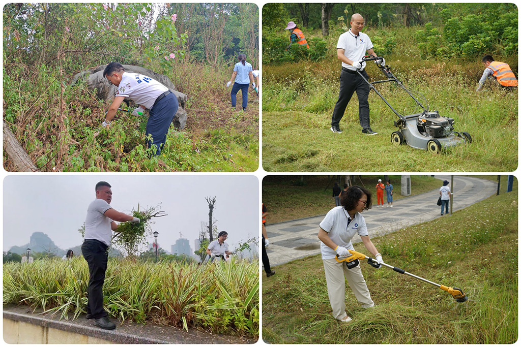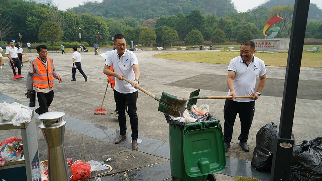山水公園作為桂林新區(qū)的一張亮麗名片,承載著展現(xiàn)城市風(fēng)貌的重要使命。在國(guó)內(nèi)經(jīng)濟(jì)下行、財(cái)政支持相對(duì)不足的情況下,桂林新城投資開發(fā)集團(tuán)有限公司(簡(jiǎn)稱“新城投集團(tuán)”)勇挑重?fù)?dān),為政府承擔(dān)起公園日常維護(hù)之責(zé)。2024年10月14日新城投集團(tuán)立足自身實(shí)際,充分發(fā)揮黨組織戰(zhàn)斗堡壘作用和黨員先鋒模范作用,廣泛動(dòng)員黨員干部沖鋒在前,以實(shí)際行動(dòng)踐行初心使命,積極開展“黨旗映勝地,清潔我先行,為山水公園洗臉”主題黨日活動(dòng),這一行動(dòng),既為了維護(hù)桂林的良好形象,又切實(shí)保障了市民的生活舒適度。集團(tuán)黨委副書記(主持工作)、副董事長(zhǎng)、總經(jīng)理朱毅攜公司領(lǐng)導(dǎo)班子成員黨委副書記兼紀(jì)委書記譚力源,黨委委員、董事、副總經(jīng)理葉青旺,黨委委員、董事、副總經(jīng)理何萌,董事、副總經(jīng)理劉敏,第一、第二、第三黨支部全體黨員(含預(yù)備黨員)、發(fā)展對(duì)象、入黨積極分子、遞交入黨申請(qǐng)書員工共100余名黨員干部參加活動(dòng)。