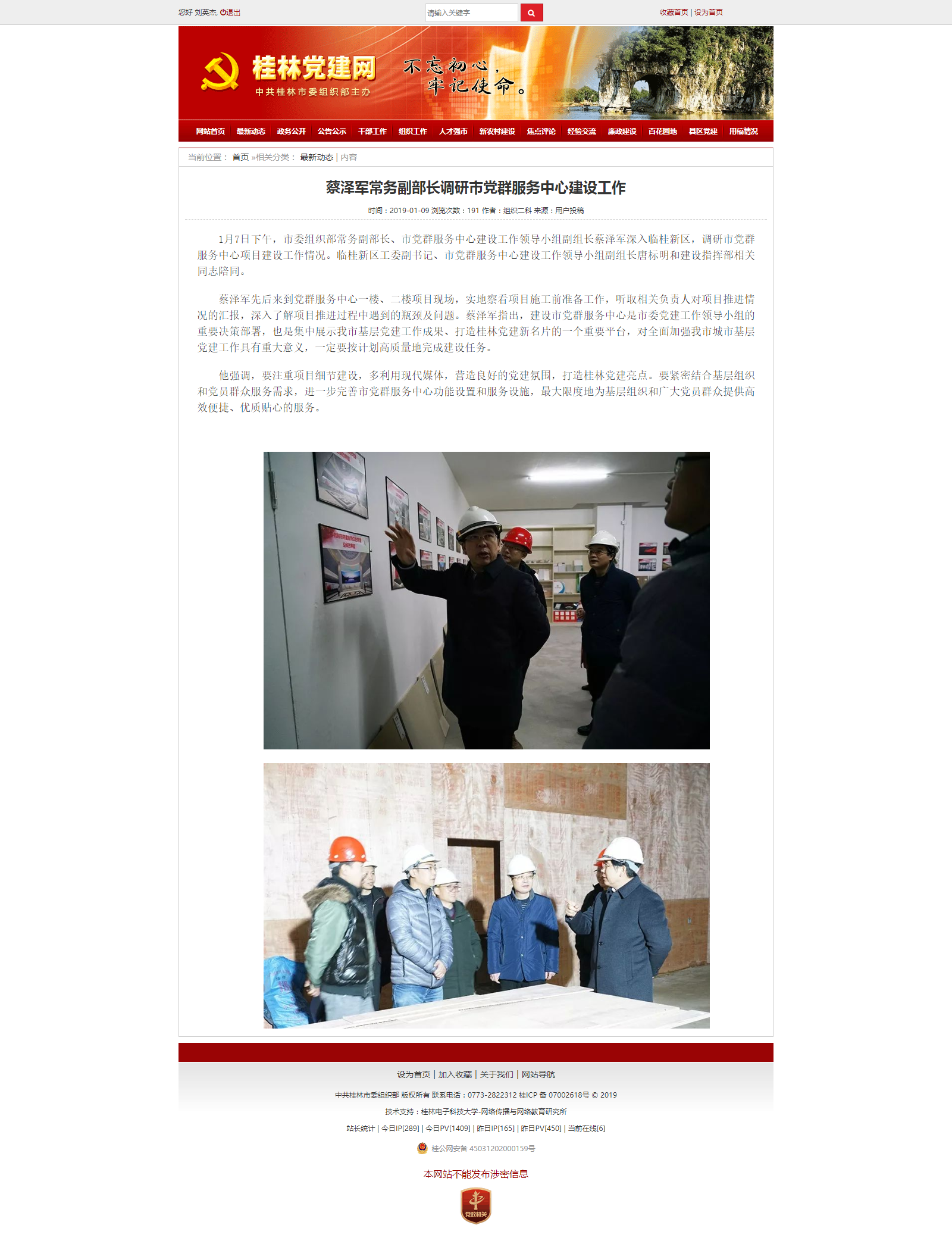 桂林黨建網(wǎng) 蔡澤軍常務(wù)副部長(zhǎng)調(diào)研市黨群服務(wù)中心建設(shè)工作