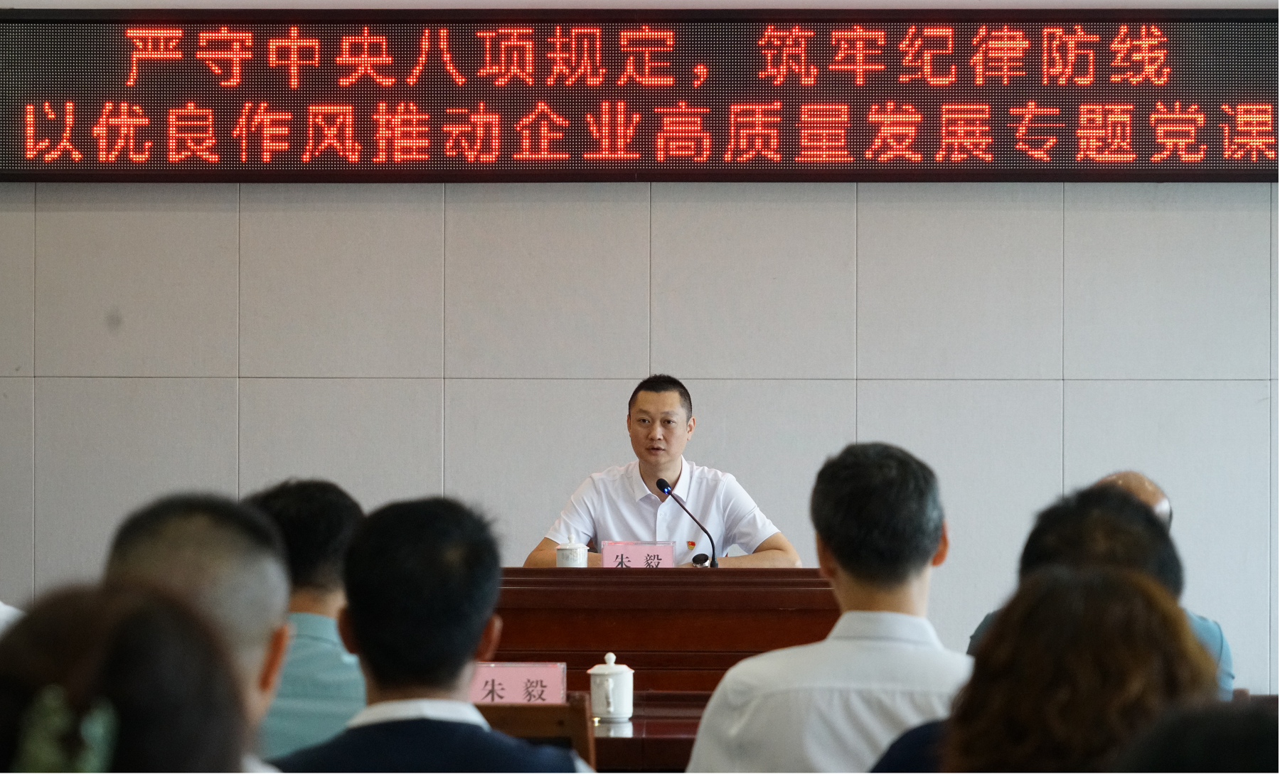 2025年7月8日,集團(tuán)黨委書記、董事長(zhǎng)朱毅同志以“嚴(yán)守中央八項(xiàng)規(guī)定,筑牢紀(jì)律防線,以優(yōu)良作風(fēng)推動(dòng)企業(yè)高質(zhì)量發(fā)展”為題,為集體黨員干部講授專題黨課,由集團(tuán)黨委副書記、紀(jì)委書記譚力源主持。此次黨課圍繞理論認(rèn)知、案例警示、實(shí)踐落實(shí)三個(gè)方面展開,深入淺出地闡釋了中央八項(xiàng)規(guī)定精神的豐富內(nèi)涵與重要意義。